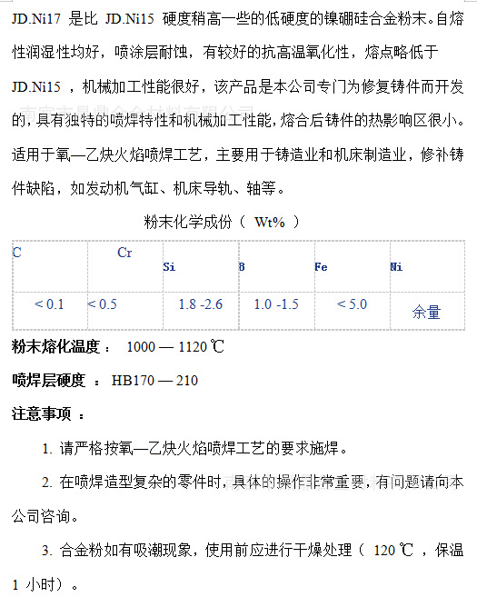公司可以根据您的要求,共同研制开发特殊用途金属粉末及金属合金粉末材料、喷涂焊丝,同时对外承接金属零部件(热喷涂、焊)表面强化和修复,并提供热喷涂(焊)技术培训和咨询服务。 清河县飞溥合金材料公司的诚信、实力和产品质量获得业界的认可。欢迎各界朋友莅临参观、指导和业务洽谈13473066543。